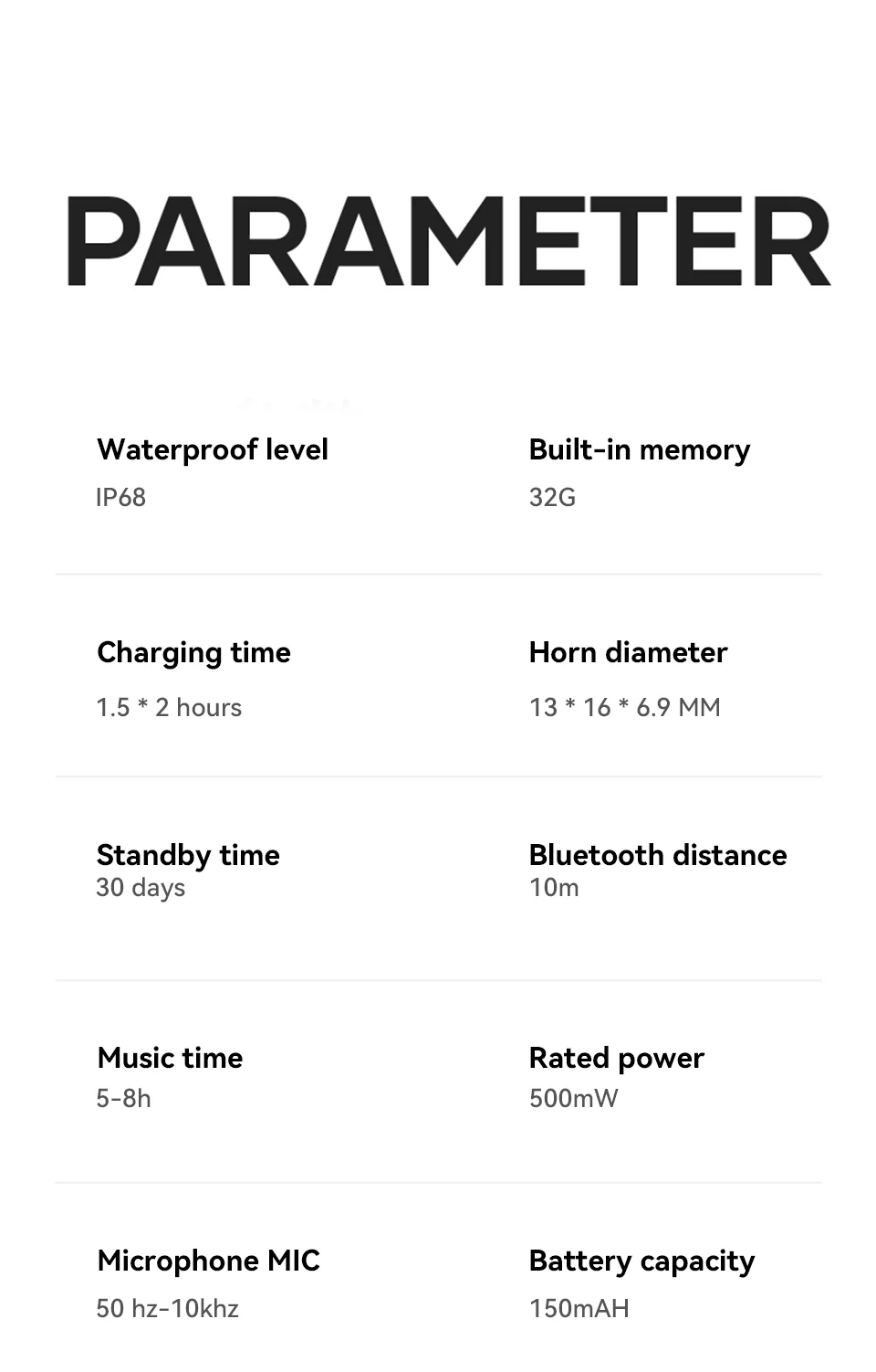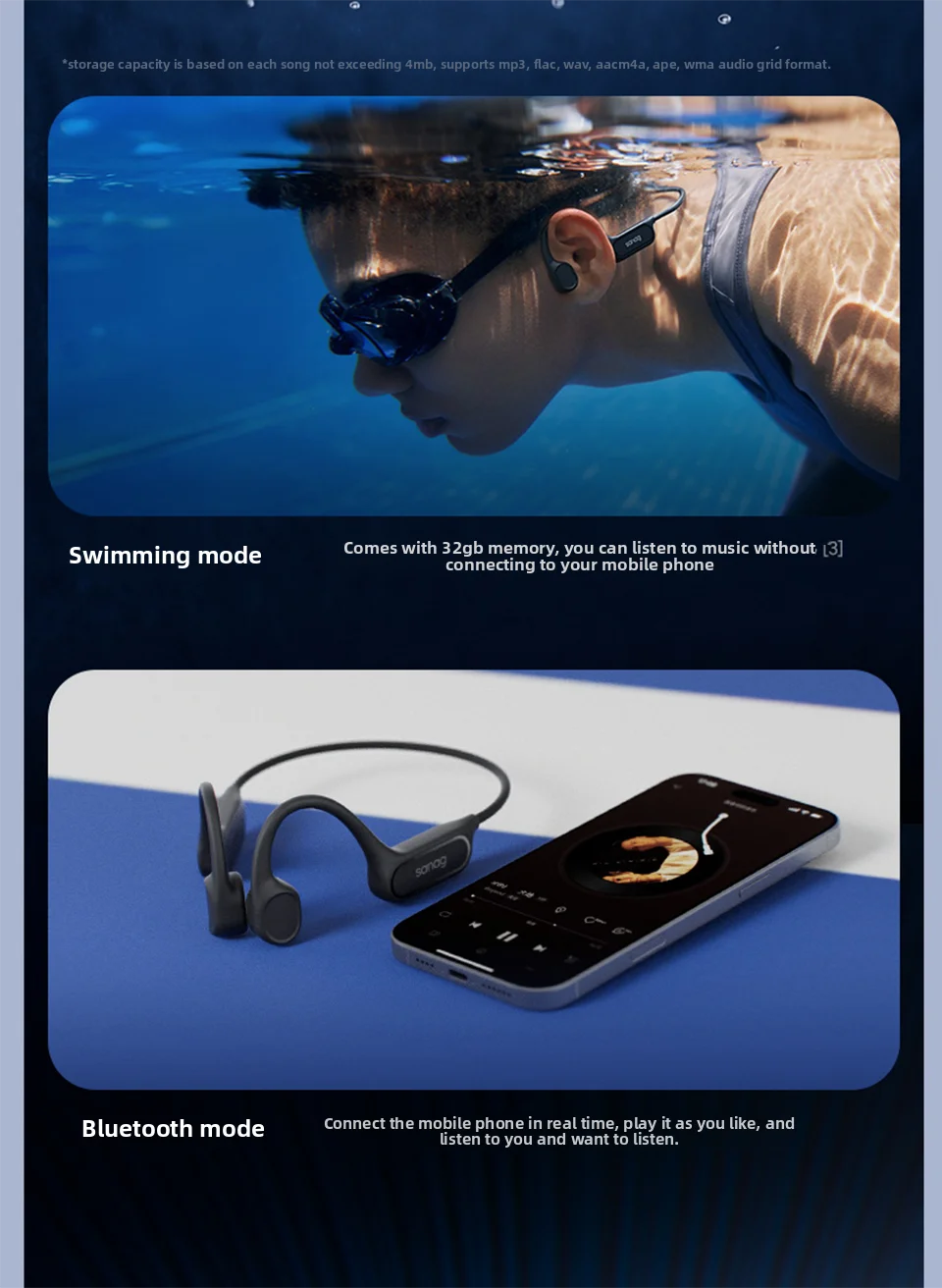 In swimming mode, you can listen to music without connecting to a mobile phone. In Bluetooth mode, you can connect to a mobile phone in real time and play whatever you want.