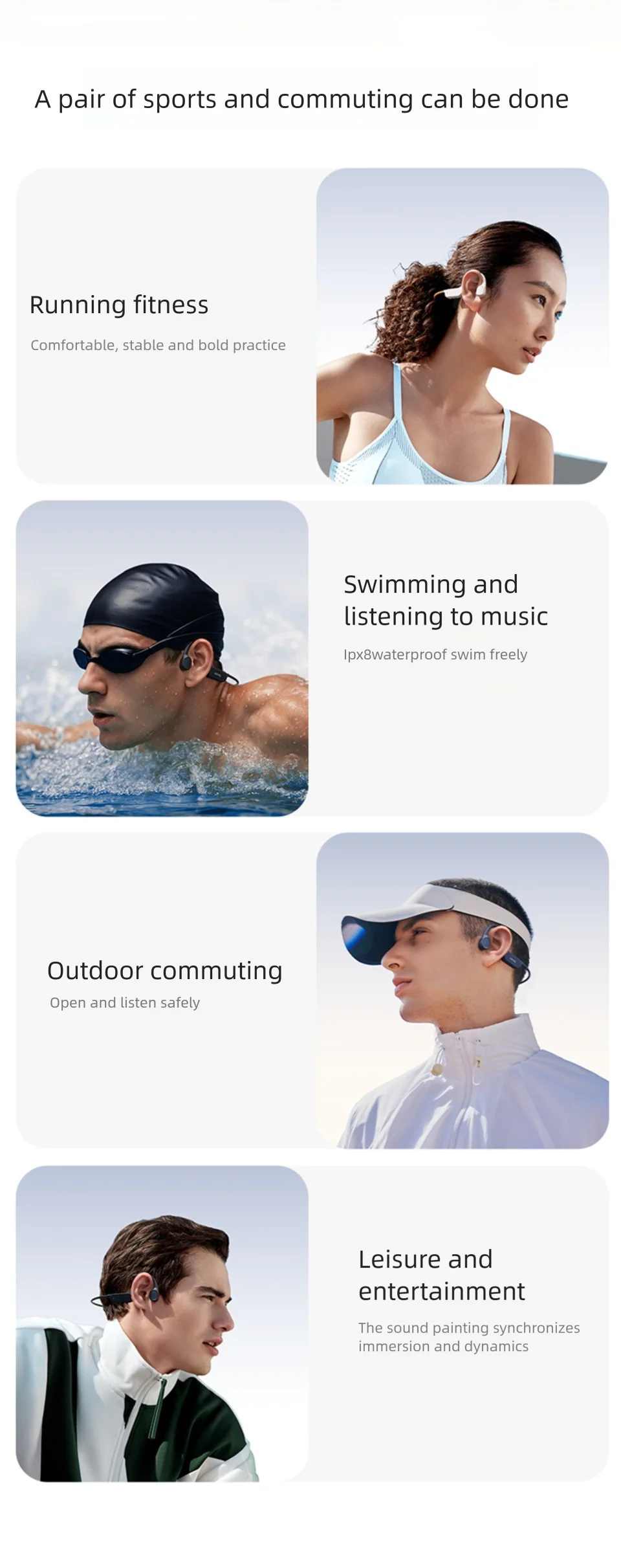 IPX8 waterproof without fear of immersion depth, bone conduction bionic deep diving low-frequency resonance technology, underwater sound field reconstruction swimming pool into a concert in seconds.