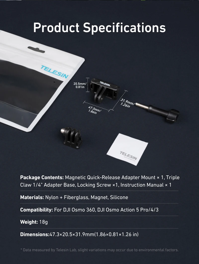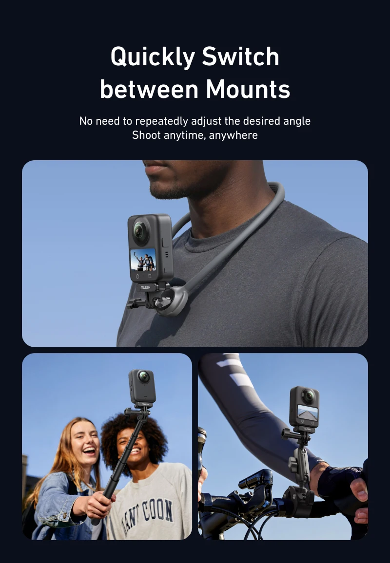 TELESIN Magnetic Two Claw Adapter Action Camera Accessories For DJI OSMO 360 Qucik Release Aluminium Alloy Dual Claw Interface