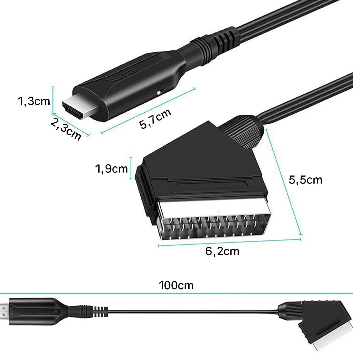 2.Output: HDMI port, Input: SCART port Converts the analog SCART input to HDMI output at 720P/1080P (60Hz) and provides advanced signal processing with high accuracy and resolution, giving you a more realistic HD experience. Note: Please wipe the contact of your TV. If the contact is rusty, this will affect the normal use of the Scart cable.
