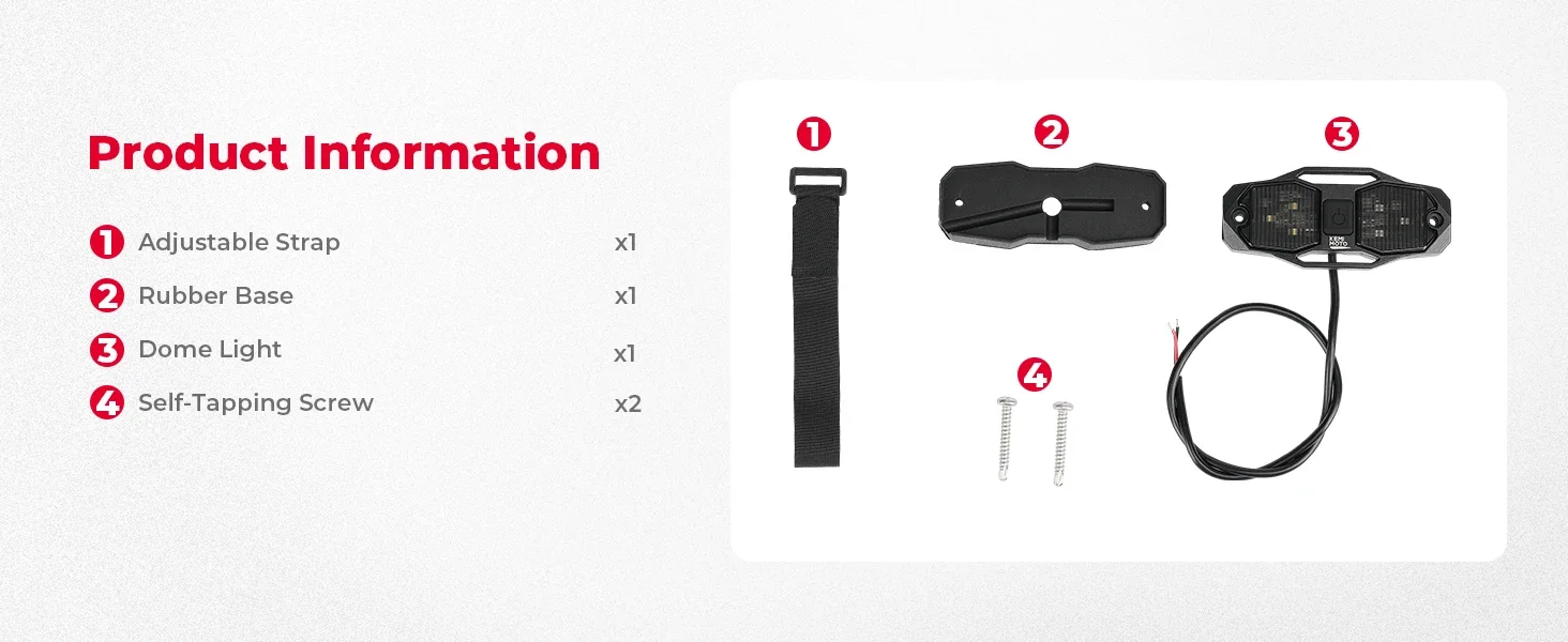 This Kemimoto Light can be installed on the cab roll cage as a dome light, map light, dashboard light, and reading light. It can be a tail light, chase light, or courtesy light if you mount it outside. You can also fix it to the place that needs light, such as your cargo bed.