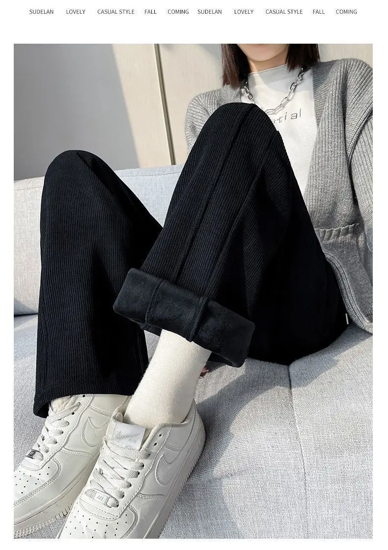 Thickened Fleece Wide Leg Pants Women's Autumn Winter New Style Northeast INS Casual Loose High Rise Straight Leg Trousers
